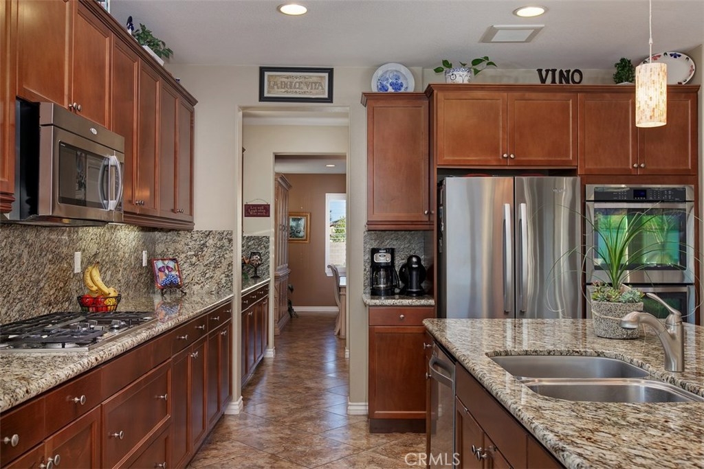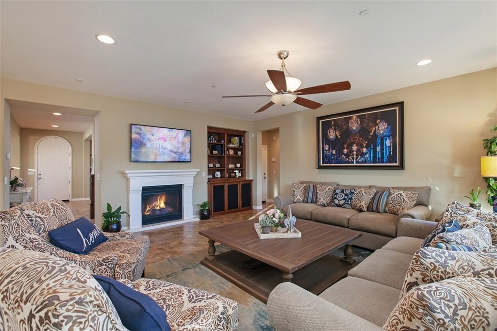 Exceptional Paseo Del Sol home with outstanding curb appeal hits the market! Absolutely beautiful throughout and includes plantation shutters, ceiling fans and neutral carpet/tile and paint! Top-of-the-line kitchen is sure to please with granite counters, island with barstool seating and storage, pendant and recessed lighting, a spacious eating area, double oven, butler's pantry, built-in desk and so much more! Formal dining room has easy access to the butler's pantry and includes tile flooring and built-in hutch/buffet. Unwind in the inviting family room by the fireplace where you will also find a ceiling fan and built-in media unit. A downstairs bedroom and bathroom make this layout extremely desirable. Upstairs you will find 3 more bedrooms and a loft. The master suite has views, dual sinks, a vanity area, separate tub and shower, walk-in closet, plus a ceiling fan and is the perfect space to relax! You're personal oasis awaits in the gorgeous backyard with meticulous landscaping, an outdoor fireplace that's perfect for entertaining, a lush grassy area, patio cover, fire pit and patio cover just to name a few amenities. Located in the boundary of top schools, and convenient to great shopping and restaurants. Paseo Del Sol amenities include community pools, spas, clubhouse, walking trails, parks, sports courts, tot lots and more. Short drive to Temecula wine Country and Pechanga Resort & Casino. Low taxes!