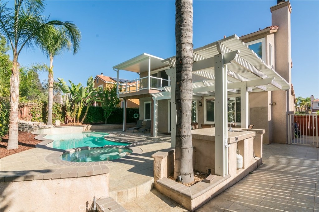 * PRIVATE POOL * UPGRADES * LOW TAX * This beautiful POOL home is located in the sought after community of Paseo Del Sol. Community features walking trails, parks, tot lots, sports courts, pools, spas & walking distance to award winning schools! This is a 4 bedroom home featuring one bedroom conveniently located downstairs & adjacent bathroom with shower. Entering the front door a feeling of space & light pervades the home. High vaulted ceiling & dramatic stairway formal living entrance enhances this homes spacious look. You will appreciate the upgrades when you walk in the door! Upgrades include crown molding, plantation shutters & engineered wood flooring throughout the downstairs. The home opens into a generous size great room that accommodates the kitchen, informal dining area & family room with fireplace, surround sound speakers, ceiling fan & built in cabinet creating a bright open living space. Remodeled kitchen features gorgeous granite counters, custom subway tile backsplash, custom cabinetry, stainless steel appliances & an oversized counter for convenient bar stool seating. Upstairs you will find 3 spacious bedrooms all feature ceiling fans. Master bedroom features an oversized glass sliding door leading to a large private patio deck enjoy the pool view. The backyard is an intrinsic part of the overall design of this home. Enjoy your PRIVATE POOL! The hardscape presents a generous outdoor living space featuring a built in BBQ island with sink. A MUST SEE HOME!