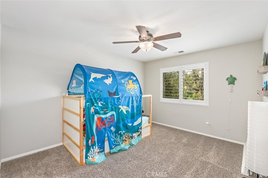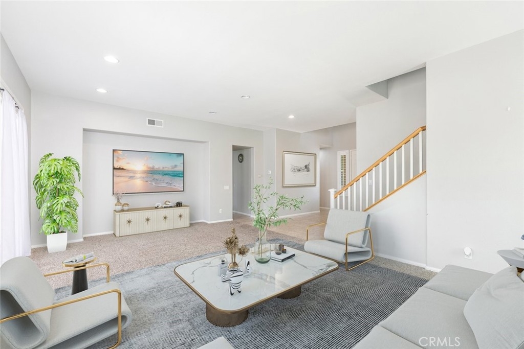 As you step inside, you'll be greeted by a palette of neutral tones and plush carpeting that create an inviting, open, and airy atmosphere throughout. The expansive floor plan spans over 3,000 square feet, providing ample space for comfortable living. On the main level, you'll find a convenient bedroom and bathroom, perfect for guests or multi-generational living, while an upstairs loft offers a versatile space for relaxation or entertainment.