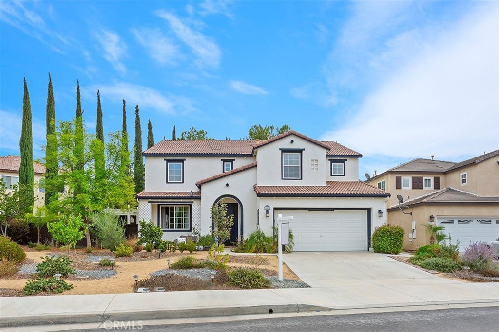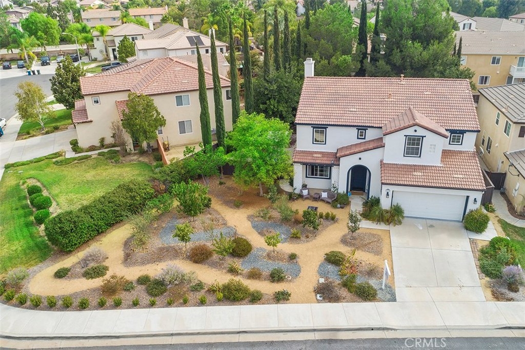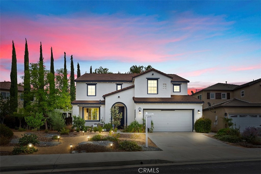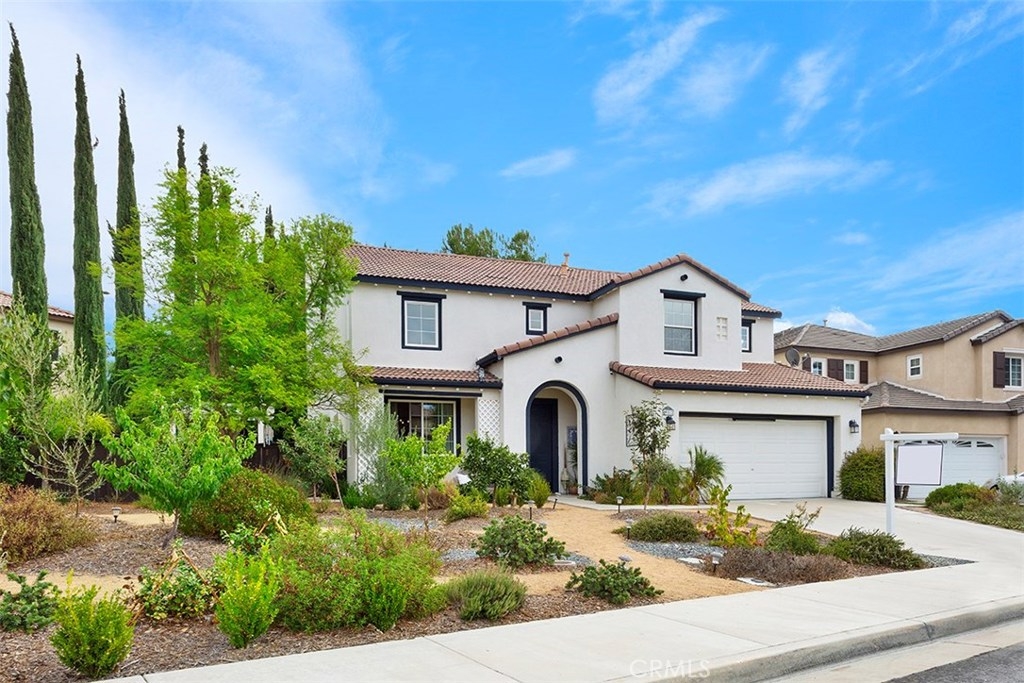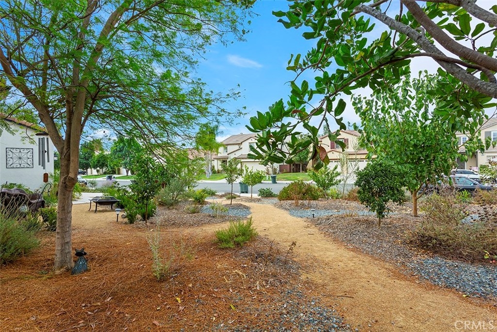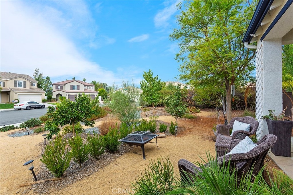 Unique 5 bedroom home with thousands in upgrades in Paseo Del Sol with a 3,000sqft majestic and low maintenance front garden that includes drip irrigation and an abundance of trees including mulberry, pineapple, guava, fig, pear, apple, peach, lemon, lime and many more! This stunning home is bright and airy featuring cathedral ceilings in the formal living and dining room with french doors leading to a peaceful and spacious side yard with built in fire pit. Upgraded laminate wood flooring has been installed throughout the whole house! The kitchen has upgraded granite counter tops, stainless steel appliances and opens up to an eat in area and family room. There is a downstairs bedroom/office and 4 additional bedrooms upstairs. And if that's not enough, the location is in one of Temecula's most sought after communities with low low taxes and within walking distance to award winning schools, the HOA includes tons of amenities such as Olympic sized swimming pools, parks, walking trails, sports courts, fitness rooms and a clubhouse.