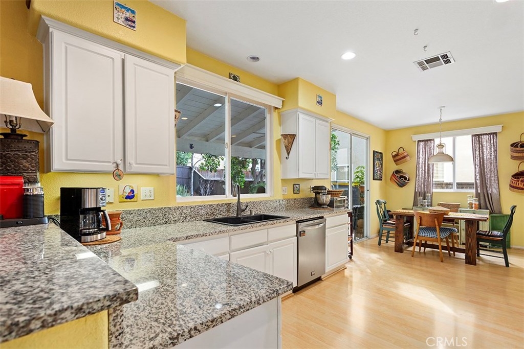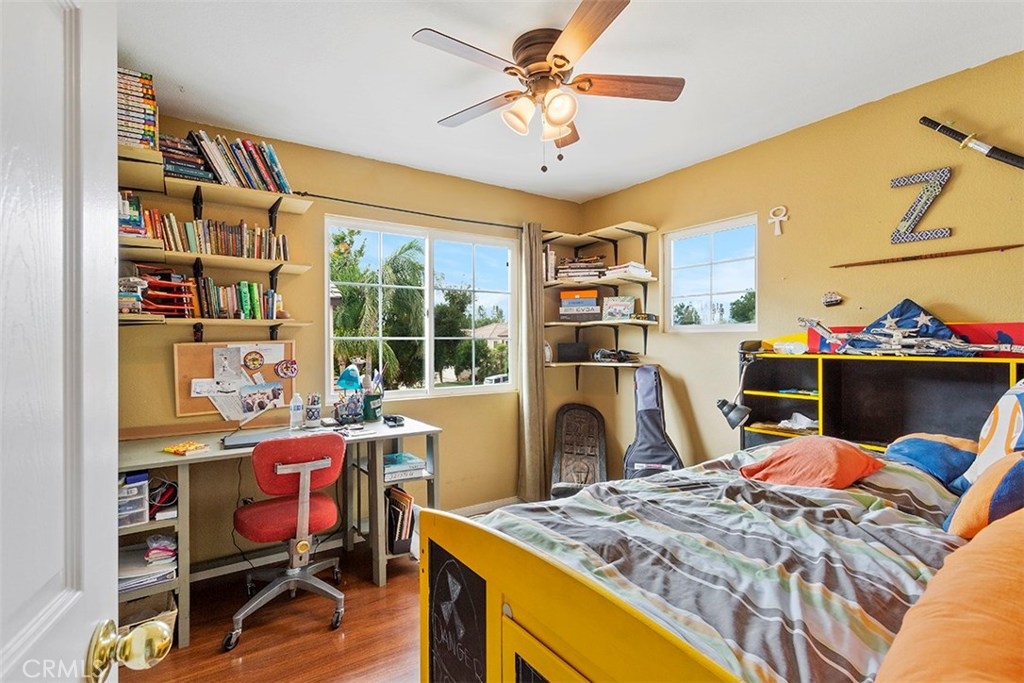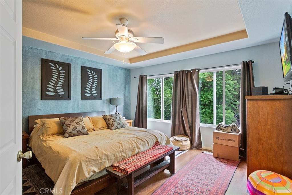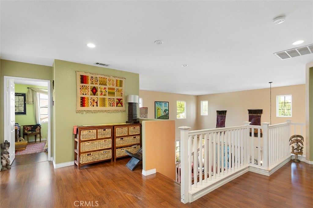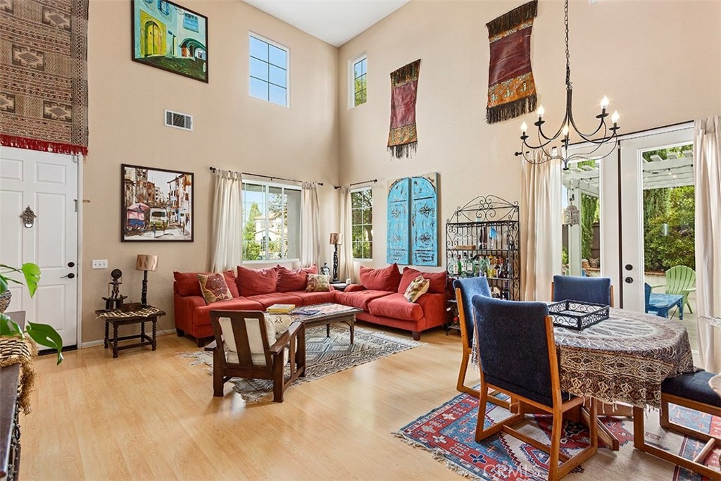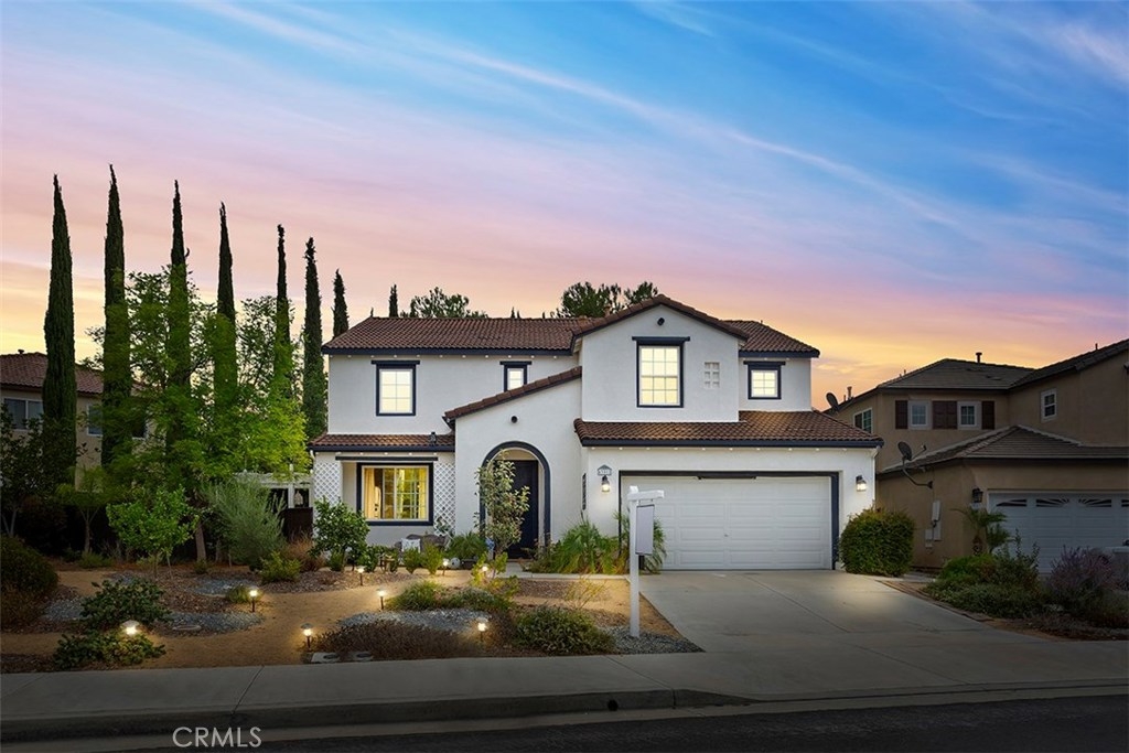 Unique 5 bedroom home with thousands in upgrades in Paseo Del Sol with a 3,000sqft majestic and low maintenance front garden that includes drip irrigation and an abundance of trees including mulberry, pineapple, guava, fig, pear, apple, peach, lemon, lime and many more! This stunning home is bright and airy featuring cathedral ceilings in the formal living and dining room with french doors leading to a peaceful and spacious side yard with built in fire pit. Upgraded laminate wood flooring has been installed throughout the whole house! The kitchen has upgraded granite counter tops, stainless steel appliances and opens up to an eat in area and family room. There is a downstairs bedroom/office and 4 additional bedrooms upstairs. And if that's not enough, the location is in one of Temecula's most sought after communities with low low taxes and within walking distance to award winning schools, the HOA includes tons of amenities such as Olympic sized swimming pools, parks, walking trails, sports courts, fitness rooms and a clubhouse.